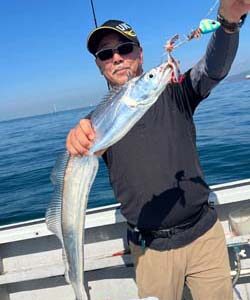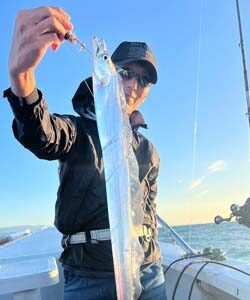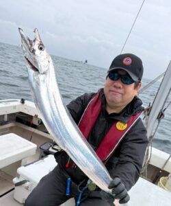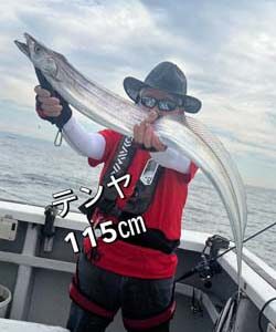 釣り始めから終わりまで、ずっとアタリありました! 波、風、雨と悪条件でしたが、ドラゴンの顔も見れて良かったです! 釣果は本間さんがジギングでタチウオ67尾。 他に55ー63尾の方が4人でした! ジギングは全員50尾以上! リリースもたくさんありがとうございました! ドラゴン123cmが上がりました! テンヤでは30ー41尾の方が4人でした!! 本日もありがとうございました!