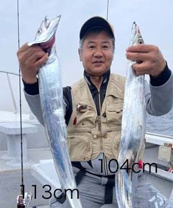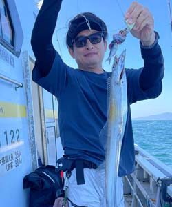 午後タチウオ便の釣果報告です! スタートから終わりまでアタリ続けました♪ 中層感度のタイミングでは皆さん、ほぼ入れ食いでした。 今日は全員テンヤです! 釣果は王さんがテンヤでタチウオ最大106cmを37尾。 他に30尾が2人でした! 109cmを筆頭にメーターオーバーが混じりました♪ 本日もありがとうございました!