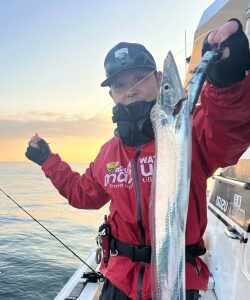 本日も遠征にやって参りました。 朝から浮いた反応であちこちでタチウオが上がってました! その後、反応が下に下がるもアタリも多く、それぞれの誘い方、掛け方で楽しんでおられました。 アタリの渋い時間帯も少しありましたが、良く当たってました! ジギングも長い修行時間は無く、定期的に釣れてる感じでしたね。 テンヤは活性の高い時にはダブルヒットやトリプルもちらほら! トップは川副さんがテンヤでタチウオ最大8...