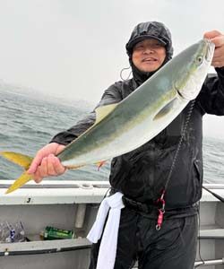 今日はブリが2尾上がりました! 昨日よりメジロも少し増えました! ブリの80cmや88cmを釣った方もいらっしゃいました! トップが山田さんでブリを1尾、ハマチを5尾。 池田さんがメジロを2尾、ハマチを4尾。 角田さんがメジロを1尾、ハマチを5尾。 他に4人の方がメジロとハマチを4ー5尾釣っていらっしゃいました。 本日もありがとうございました!