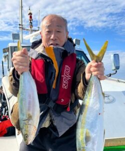 雨予報のクリスマス、しっかりと降ってくれました。 風の寒さともに冬だなと思わせる釣行。 そんな厳しい中でしたが、85cmのブリをはじめ、メジロにハマチ、そしてヒラメも! 釣り納めの方もそうでない方も、年末年始の楽しみになりましたね! 釣果は前山田さんがブリ85cmを1尾、ハマチを2尾。 本日もありがとうございました!