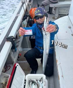遠征に行ってまいりました。 今日は朝の時合いがあり、船中でバタバタと♪ジギング、テンヤ共にタチウオが舞ってました! 棚も船長の言い棚でバッチリ安定のアタリラッシュ!! そしてドラマは後半に♪ 114cmと106cmのビッグサイズがドドンっと!!流石です♪ ロマンがありますねぇ。 釣果のトップは吉富さんでテンヤでタチウオ最大114cmを31尾。 その他テンヤでは14ー16尾の方が6人、ジギングでは...