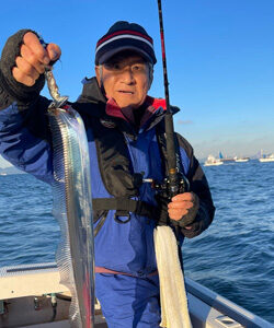 今日は暖かくなるとの予報ですが朝はやはり冷えます。 日中はポカポカ陽気でした。 肝心のタチウオですが朝はポコポコとよくアタリもあり、これは!と期待もやはり魔の時間が。。。 潮まわりのせいなのか?はたまた? 遠征して粘ってはみましたが、また明日からに期待です。 山中さんがテンヤでタチウオ最大88cmを17尾。 本日もありがとうございました。