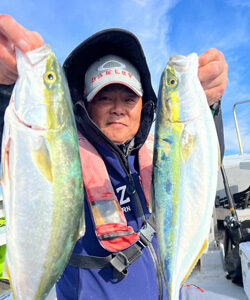 今日は天気も良く風も穏やかななんという釣り日和。 いざ!青物狙い! 親子でリベンジに来た方も見事にリベンジ成功! ホッと一安心。 今日はかなり渋かったのに流石です。 お友達同士で来られた方々も互いに釣れて良かったです。 トップはハマチを2尾の人が3人。 ぷりぷりのメジロも姿を見せてくれました! 脂の乗った美味しい青物のお土産を手にしました。 本日もありがとうございました