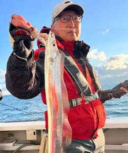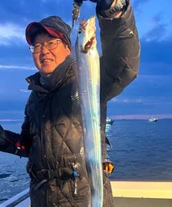 今日は大しけ後の出船。タチウオのご機嫌はどうかな?? テンヤもジギングも朝は素直に高反応でしたね♪ 渋いのは変わらないですが、タチウオ釣りが初めてのレンタル竿の方がやってくれました! トップでタチウオ8尾と大健闘!! アタリはあっても追ってこない事もあるので、誘い掛けが良いかも♪ 棚もまちまちなので広く早く探ると釣果につながるかと思います! 強風極寒の中、皆様お疲れ様でした! 帰ったら身体温めて下...