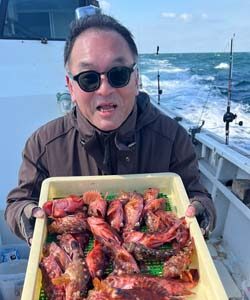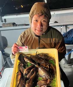 今週から狙いをメバルにしぼり、時間をずらして出船です。 ダブルにトリプルと船上にぎやかで、皆さん型の良いメバルにご満悦♪ 釣果は武浪さんがメバル最大25cmを40尾。 続いて田丸さんがメバル最大25cmを28尾。 岡村さんがメバル最大25cmを26尾などでした。 本日もありがとうございました!