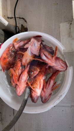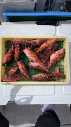 三連休明けにもかかわらず、ガシラ好き?の方々ありがとうございました! みなさん、焼きに煮付けにはたまた刺身?な結構粒ぞろいの赤い魚にご満悦♪ 初めての女性の方も奮闘され、最後にツヌケ達成です! トップは、福山さん14尾! 他にも12尾、11尾、10尾の方がいらっしゃいました。 本日もありがとうございました!