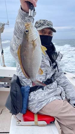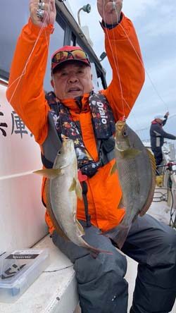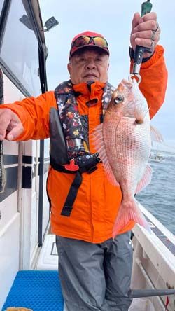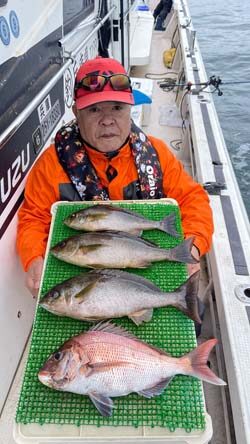 肥後さんがマダイ41cmを1尾、イサキ41cmを3尾。