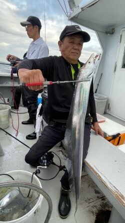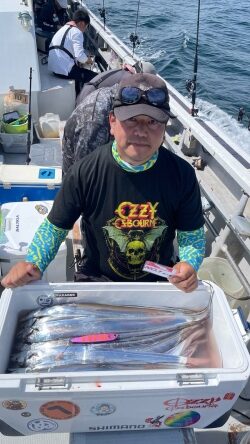 ようやく秋らしくなって来たのかと思わせる涼しさの中タチウオは元気一杯! 終始アタリありで型も揃ってまずまず! トップの方はさすがに手返しよく釣られてました。 テンヤの方もほとんどが20尾以上釣り、 おまけに81cmのサワラも釣れた方もいて皆さん笑顔でお帰りです。 釣果は小津さんがジギングでタチウオ最大88cmを89尾、ジギングは他に54尾。 テンヤのトップはタチウオは43尾、他にも30ー41尾の方が8人いらっしゃいました。 本日もありがとうございました!