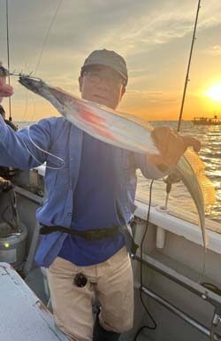 本日の釣果は、浜地さんがジギングでタチウオ最大85cmを41尾。