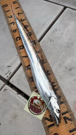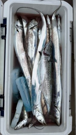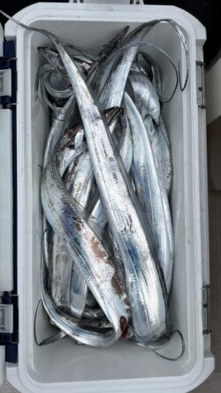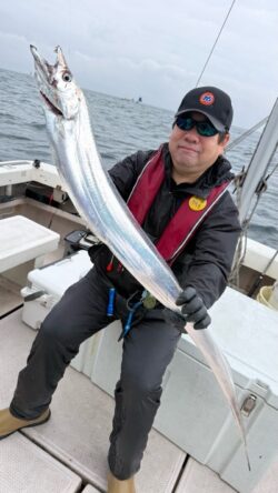 釣り始めから終わりまで、ずっとアタリありました! 波、風、雨と悪条件でしたが、ドラゴンの顔も見れて良かったです! 釣果は本間さんがジギングでタチウオ67尾。 他に55ー63尾の方が4人でした! ジギングは全員50尾以上! リリースもたくさんありがとうございました! ドラゴン123cmが上がりました! テンヤでは30ー41尾の方が4人でした!! 本日もありがとうございました!