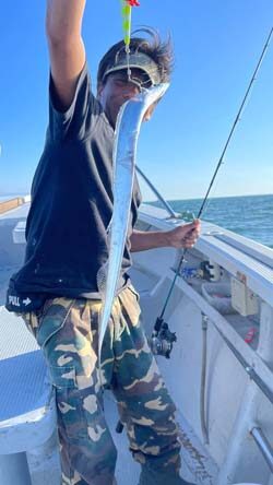 10月の季節を感じさせない、日中の気温と朝の過ごしやすさの違いにタチウオもどこかに? 昨日に続きテクニカルな釣りとなりましたが、やはり時合いはあるものです。その時に如何に手返し良くできるかが釣果に結びつきますね! テンヤの準備等、細かな所を少し気にしてみて下さね♪ 釣果は宇野さんがテンヤでタチウオ最大85cmを20尾。 ジギングではタチウオを12尾でした。 今日もゲストにいい型のハモが釣れました♪ 本日もありがとうございました!