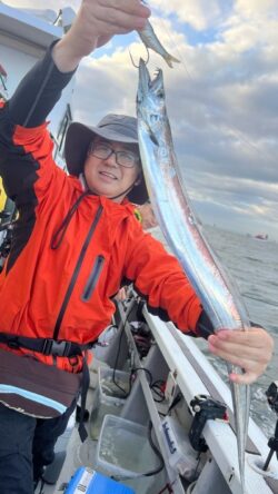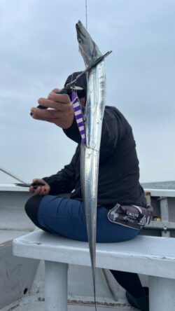 今日は、朝はパタパタっと反応あるものの、喰いの渋い1日でした。 竿が突っ込んでも乗らないみたいな・・・ 潮は激しく流れる事はほとんど無かったんですが、それでも初めてに近い方も何とかタチウオが数尾釣れて良かったです! 美味しいお土産のサワラとメジロもGET! 船中盛り上がりました♪ 釣果のトップは奥村さんがタチウオを12尾、ジギングで8尾。 本日も皆様ありがとうございました!
