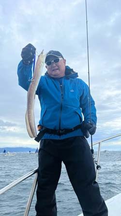 今日も朝から高活性とバタバタっと、浮いた反応で釣れていました。 が、続かず。。。 昨日より魚探の反応もあったんですが、激流も無かったのに喰い込まず渋い。 上げたら付いてるパターンもありました。 居食いも多かったみたいです。 そして他魚の部門ではハモやサゴシで盛り上がってました♪ 釣果のトップはジギングではタチウオ最大83cmを12尾。テンヤでは9尾でした。 本日も皆様ありがとうございました!
