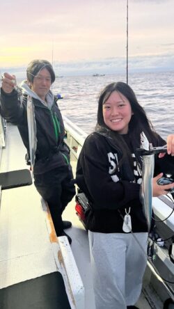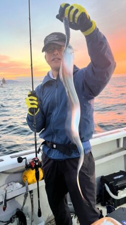 今日は穏やかで風も気持ち良く魚の反応も思っていたよりは良かったです! 朝のラッシュもあり、バタバタと釣れてました! 釣れる時に釣るのが釣果を伸ばす秘訣ですね! 2尾同時ヒットもありました!! タチウオが浮いてる時はチャンスかも! 釣果は遠山さんがジギングで最大85cmのタチウオを29尾。 テンヤのトップの方が20尾。 他にもテンヤでは15ー17尾の方が5人いらっしゃいました! 本日も皆様ありがとうございました!