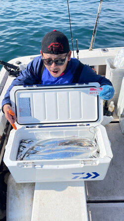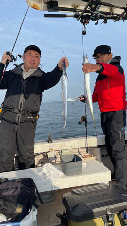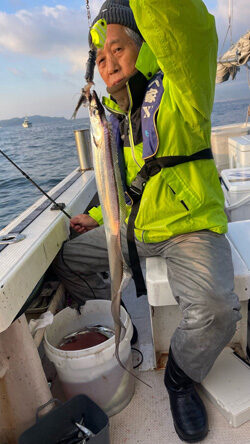 遠征にて本日も満船ありがとうございます! さて今日のタチウオは、ご機嫌宜しく、朝から活性高め!!!! サイズも昨日より少し良いかな? そろそろドラゴン見たいけど。 天気も良くて釣り日和の3連休の締めでした! 久住さんがテンヤでタチウオ最大90cmを44尾。 テンヤは他に23ー31尾の人が5人、ジギングは16尾でした。 本日もありがとうございました。