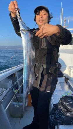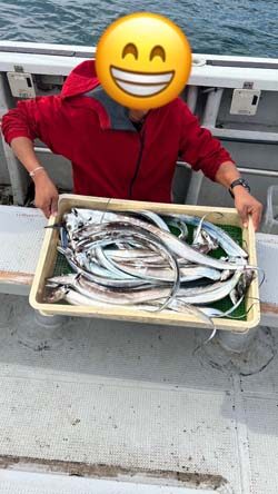 釣果トップがGさんでテンヤでタチウオ最大90cmを35尾。
