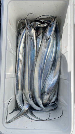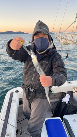 今日は暖かくなるとの予報ですが朝はやはり冷えます。 日中はポカポカ陽気でした。 肝心のタチウオですが朝はポコポコとよくアタリもあり、これは!と期待もやはり魔の時間が。。。 潮まわりのせいなのか?はたまた? 遠征して粘ってはみましたが、また明日からに期待です。 山中さんがテンヤでタチウオ最大88cmを17尾。 本日もありがとうございました。