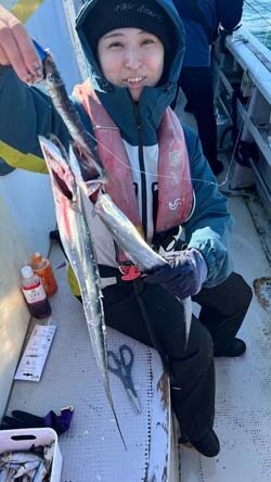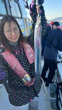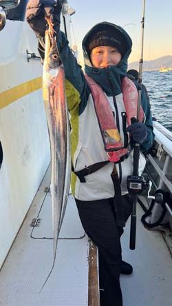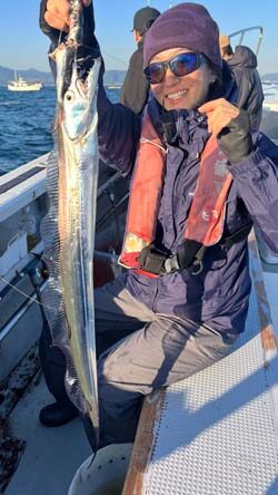 今日はレンタルが多く、初めてタチウオ釣りをされる方も多かったのですが、20尾近く釣ってる女性の方が多かったのに驚きです!