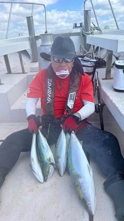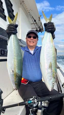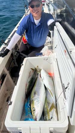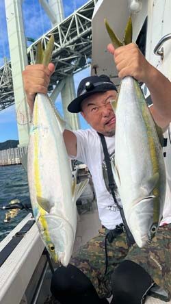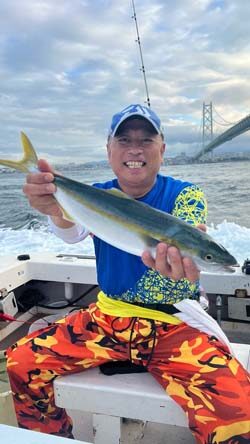 今日は天気も良く、エサのアジ釣りから夜景を見ながらの贅沢な釣りの後、ノマセに♪ 海も穏やかで1日アタリがあり、楽しまれていました! ハマチにメジロ達が遊んでくれて、サワラも! 惜しくも切れてしまいましたが賑やかな船内でした♪ 明石海峡をバックに、メジロも多くあがって楽しませてくれました! 皆様お疲れ様でした♪ 釣果のトップは武波さんでメジロを1尾、ハマチを4尾。 本日は雨の中ありがとうございました!