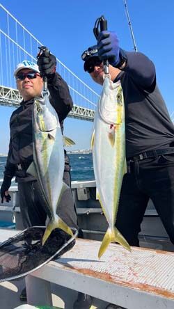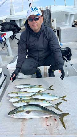 今日は朝から秋らしく清々しくスタート♪ からのいきなりのダブルHIT! 丸々した綺麗なメジロが姿を見せてくれました♪ 中盤も釣れ続けて、終わってみればメジロ・ハマチが船中で40尾!! 後半もバタバタっと釣れてくれて皆さん釣られて良かったです♪ 釣果トップは北本さん、小丸さんでそれぞれメジロを2尾、ハマチを5尾。 他にもメジロ・ハマチを3ー4尾の方が3人♪ 本日も皆様ありがとうございました!