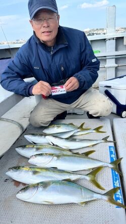 今日は絶好の釣り日和でした! 風も穏やかで全員青物を2尾以上の釣果♪ 手返しのいい方は連続でHITして釣り上げてました! 喰いが渋かったのかメジロクラスは上まで来てバレる事が! ブリサイズはラインブレイク! それでも終始誰かの竿が曲がってる感じの1日でした。 時合いの時は5人同時にHITもあり、船内はバタバタでした。 釣果はトップが柴崎さんでハマチを7尾。 その他がメジロとハマチを4ー5尾の方が5人いらっしゃいました。 本日も皆様ありがとうございました!