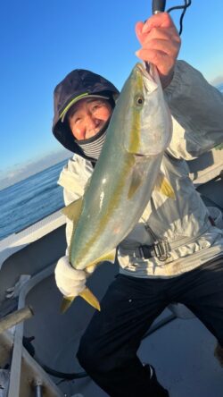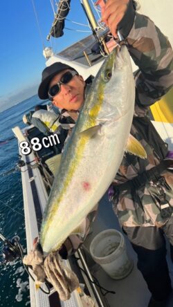 ハマチ、メジロが釣れる中、またもレンタルで初めての船釣りの方に88cmの丸々体高のブリ!!