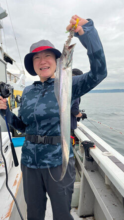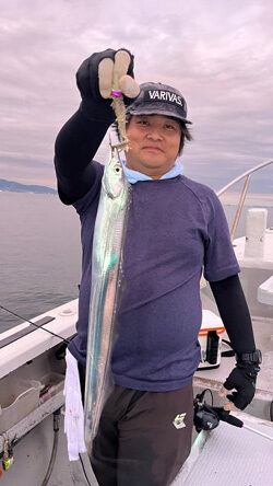 濁り?穏やかな波、風、潮。 タチウオはポロポロと上がりはするものの、パッとせず。 コツコツと竿先アタるも、エサを取られ、タチウオ、、、難しいなぁ。。 いないわけではない! でも、気を取り直して明日に!!! トップはテンヤでタチウオを6尾でした。 本日もありがとうございました。