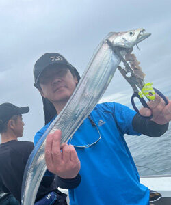 午前とはまた違ってなかなかテクニカルな釣りに! 雨も混じりながらでしたが、時合いでは一気に上がる場面も! 少人数ではありましたが、楽しい時間をすごせたのでは? 明日は全便満船! 気合い入れて行ってきます。 釣果は宮脇さんがジギングでタチウオ最大85cmを40尾。 藤原さんがテンヤでタチウオ最大88cmを32尾。 テンヤはほかに22尾、28尾の方いらっしゃいました! 本日もありがとうございました!
