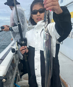 今日の午後はいきなり雨スタートと思いきや、釣り場に着くと雨はやんでいました♪ 朝と変わらずウネリと強風と潮に翻弄され、潮の流れも終止ほぼ治らず苦戦しました。 反応はあるものの渋い状態で。。。 ライントラブルも多い中、お子さんも頑張って釣られていました♪ そんな中、後半に水深85mでまさかのアタリ棚が♪5ー10m! これは次回試す価値があるかも!! 釣果は玉田さんがテンヤでタチウオ最大85cmを18...
