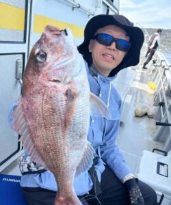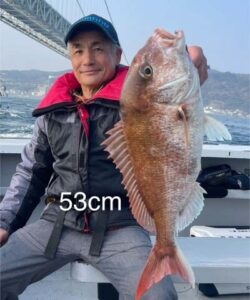 気持ちいい天気♪ 初のマダイに興奮してましたね! 息子さんの釣ったマダイで今夜は晩酌かな?? サビキが初めての方もそうでない方も、まだまだこれからですよ! 綺麗なピンク色のマダイ、釣りに来てくださいね♪ 釣果は奥村さんがマダイ51cmを1尾。 山田さんがマダイ53cmを1尾などでした。 本日もありがとうございました!