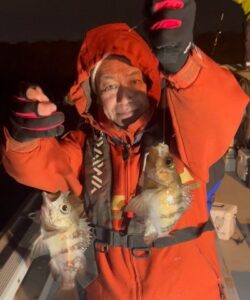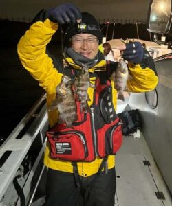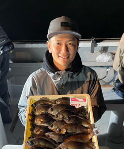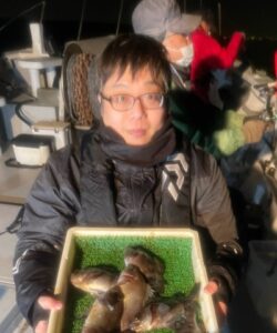 夜はやはりまだまだ寒い?メバルも? いやいやまだまだ最大26cmとまずまずの型が揃ってましたね! 数はもう折り返し地点! 船発メバルの若者も頑張って本日最大のメバルゲットです! 釣果は来留須さんがメバル最大25cmを13尾。 他にも10尾の方が3人いらっしゃいました! 本日もありがとうございました。