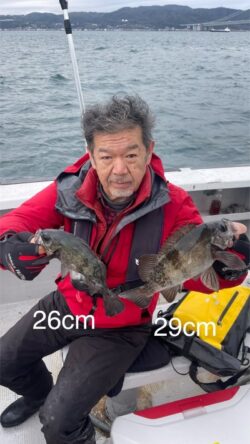 いよいよこの季節になりましたね! 桜、桜、桜鯛♪名前の通り綺麗な色のマダイが釣れました! 今日はお試しとはいえ、52cmを筆頭に49cm、47cmとしっかり50cmオーバーも釣れました♪ つられて29cm、26cmと尺近いサイズのメバルもチラホラと! これから本番を迎えるマダイ!好スタートになりました♪ トップは盛岡さんでマダイを2尾に29cmのメバル1尾のオマケ付! 本日もありがとうございました!!