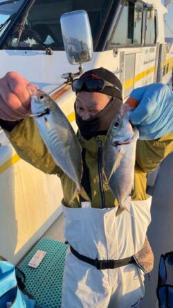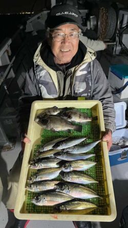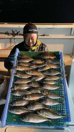 永井さんが中アジ最大25cmを15尾、メバル最大24cmを3尾。