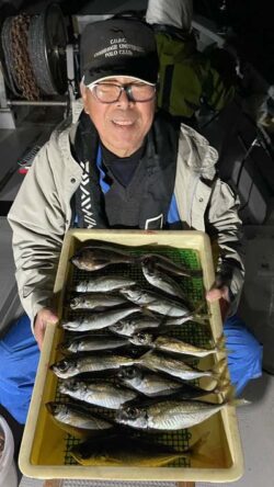 氏田(兄)さんが中アジ最大25cmを12尾、メバル最大26cmを3尾。